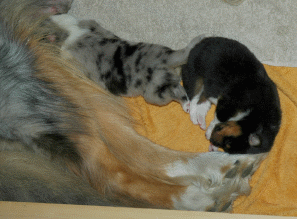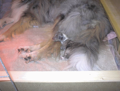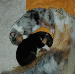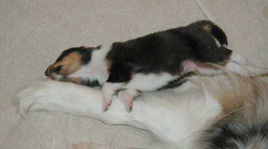 Mom's tail makes a nice pillow